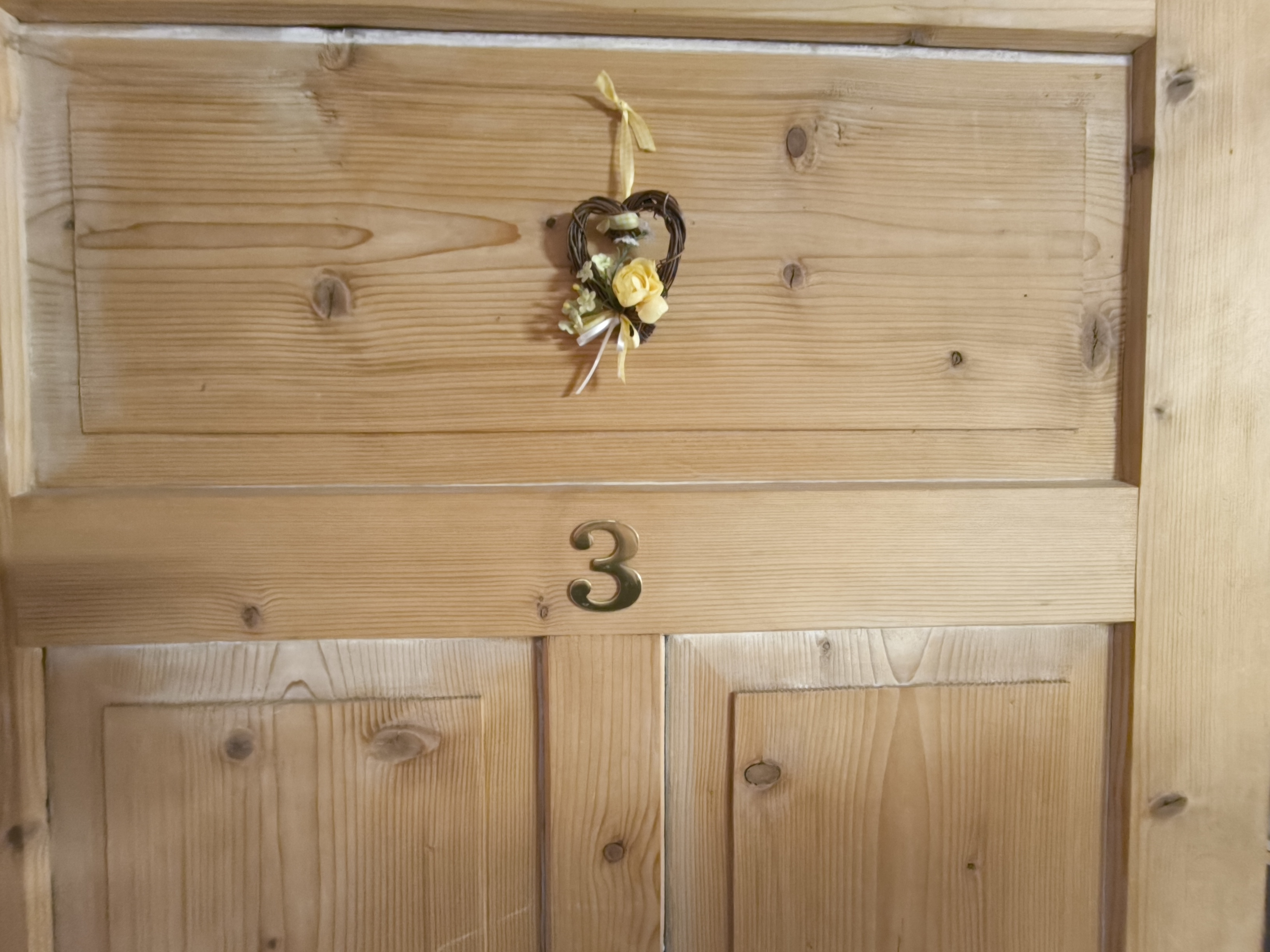 Die Ferienwohnung 3 ist etwa 50 qm groß und hat einen großen Balkon. Sie verfügt über eine große, gut ausgestattete Wohnküche. Die Wohnung hat im Wohn-/Schlafzimmer eine Couch, welche sich zu einem Doppelbett (mit regulären Matratzen!) aufklappen lässt. Dort befinden sich auch ein Fernseher und ein Radio. Im zweiten Schlafzimmer befinden sich zwei normale Betten. Der Nassraum besteht aus WC, Dusche und Waschbecken. Ein Föhn ist natürlich auch vorhanden. Die Küche hat ein Kochfeld mit vier Platten. Außerdem sind Kühlschrank mit Gefrierfach, Wasserkocher, Toaster und Eierkocher in der Küche.
